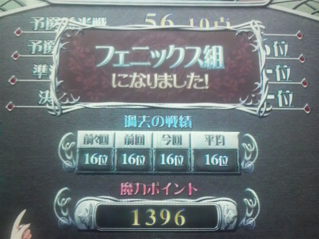 大魔一級まで行き着いたところで急にトナメの引きが悪くなって連続8位とか叩き出して涙目になったりしてましたが…