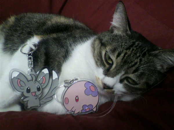 ポケセンの新グッズのチラ見とムンナキーホルダー、張り切って買いに行ったはいいがでかすぎて使いどころに困っております。さりげなく鞄に提げるか家の鍵につけようかと思っていたが主張しすぎである…仕方ないので使い道が見つかるまで本棚に立てて飾ってあります。えと…これキーホルダーな。