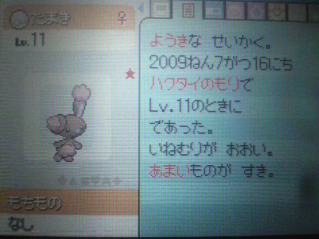 な感じで寝る前の1時間弱を使ってチマチマポケトレしました、「こらえる」がウザいことに定評のあるミミロルです。
